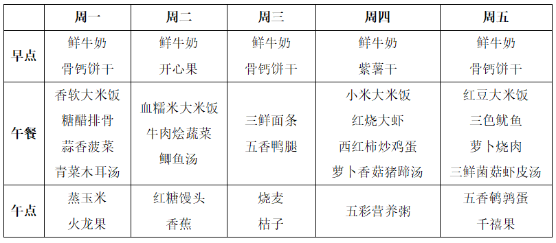 九龙湖幼儿园第十九周食谱
